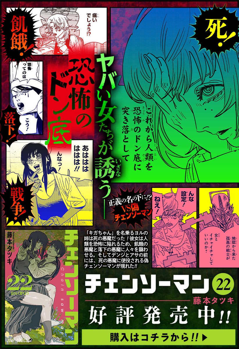 . チェンソーマンtシャツとかチェンソーマンジュースとかが売られるようになる 50 221012水222210 No981537778 呪術コースに乗るとドラッグストアとかでココカ. チェンソーマン 第二部 藤本タツキ tvアニメ毎週火曜2400テレビ東京他にて放送中 チェンソーの悪魔を身に宿した少年デンジ世界は.